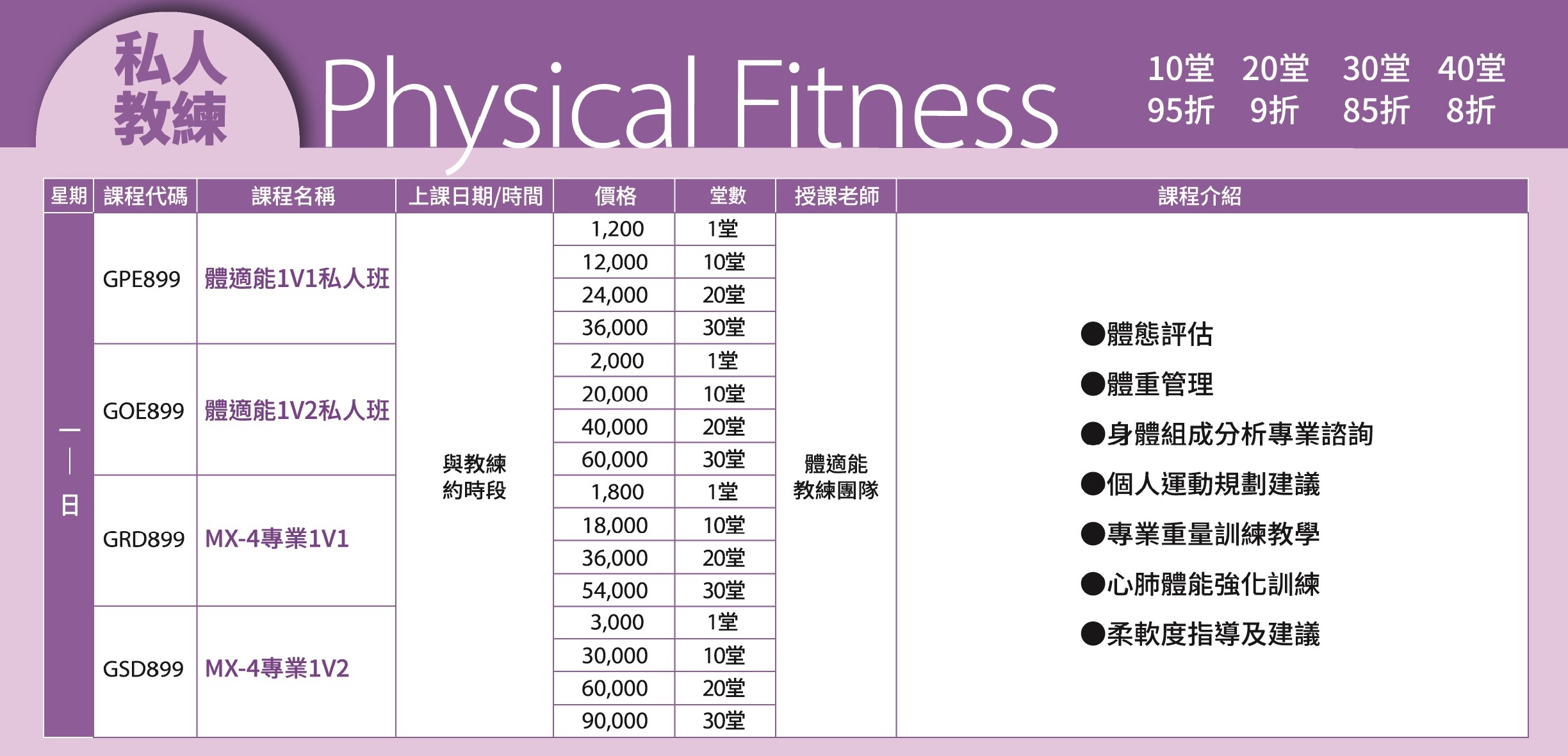 體適能私人班/自組班