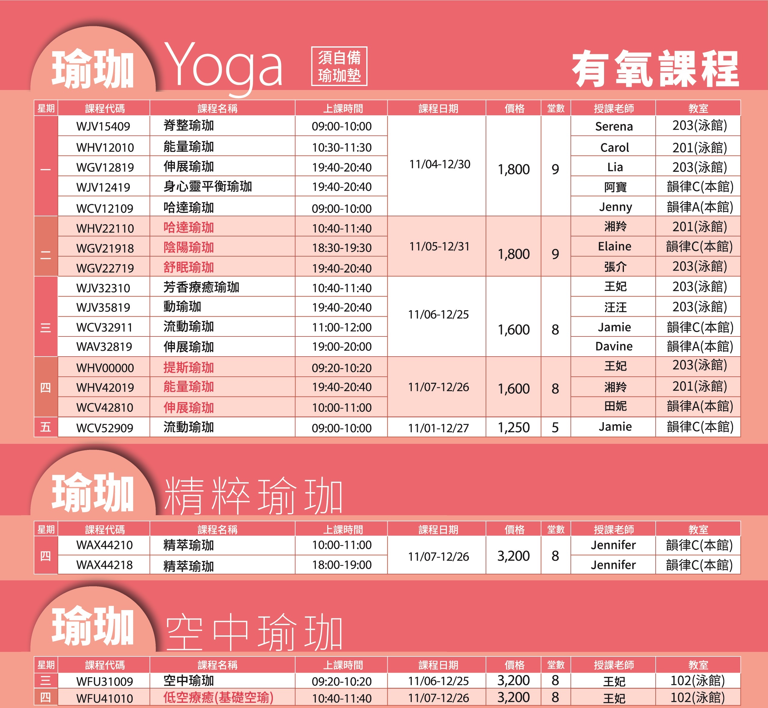 115-1期(3-4月)體驗課表(不定時更新)