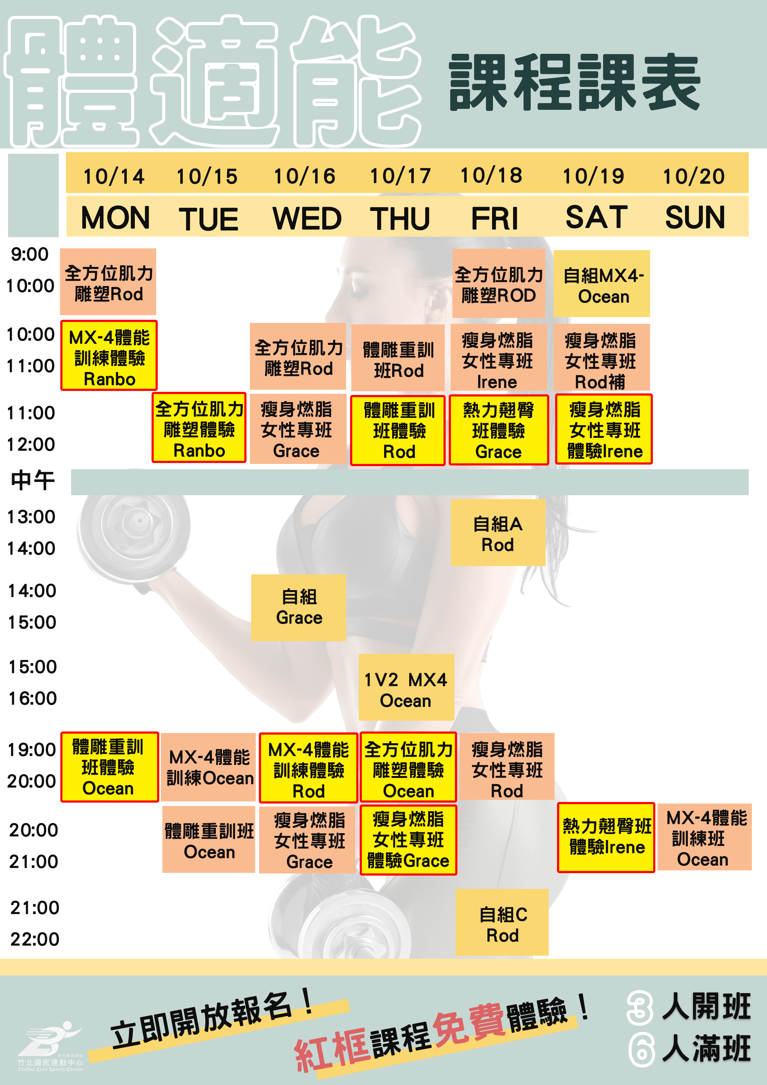 竹北免費體適能課表